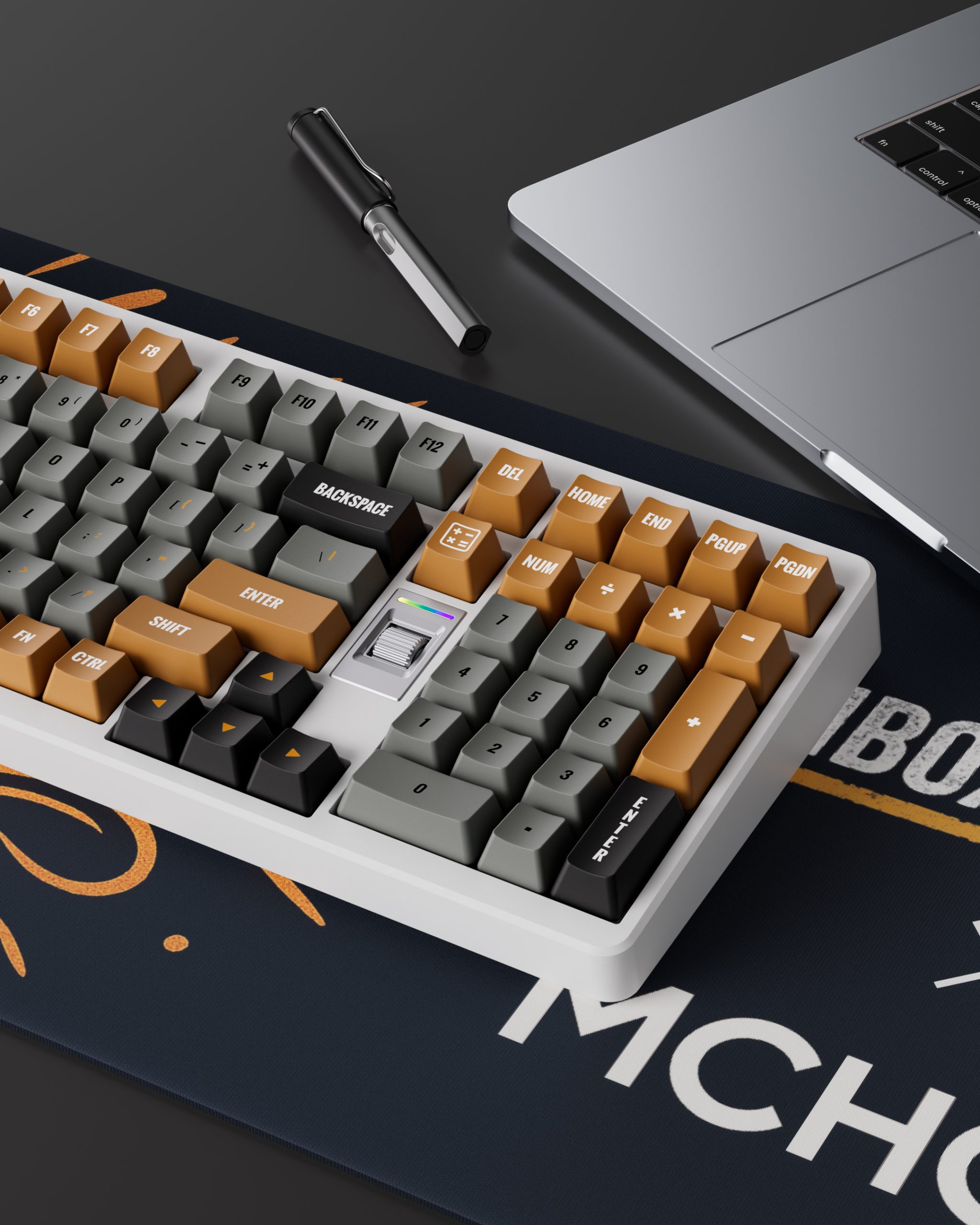 MCHOSE UT98 to kompaktowa, ultracicha klawiatura mechaniczna o 98-procentowym układzie, opracowana we współpracy z twórcami Unbox Therapy w wyjątkowej wersji Retro Therapy. Wyposażona w przełączniki Silent Peach V3 lub Icy Creamsicle, oferuje niezwykle miękki i stonowany dźwięk, zachowując jednocześnie pełną precyzję mechanicznych klawiszy. Konstrukcja typu gasket mount, pięciowarstwowy system tłumienia oraz potrójny tryb łączności (Type-C, 2.4 GHz, Bluetooth) zapewniają płynność, stabilność i wszechstronność niezależnie od zastosowania. Ogromna bateria 10 000 mAh, zaawansowana personalizacja przez MCHOSE HUB i subtelne podświetlenie RGB sprawiają, że UT98 to niezwykle dopracowane narzędzie do pracy, twórczości i rozgrywki.