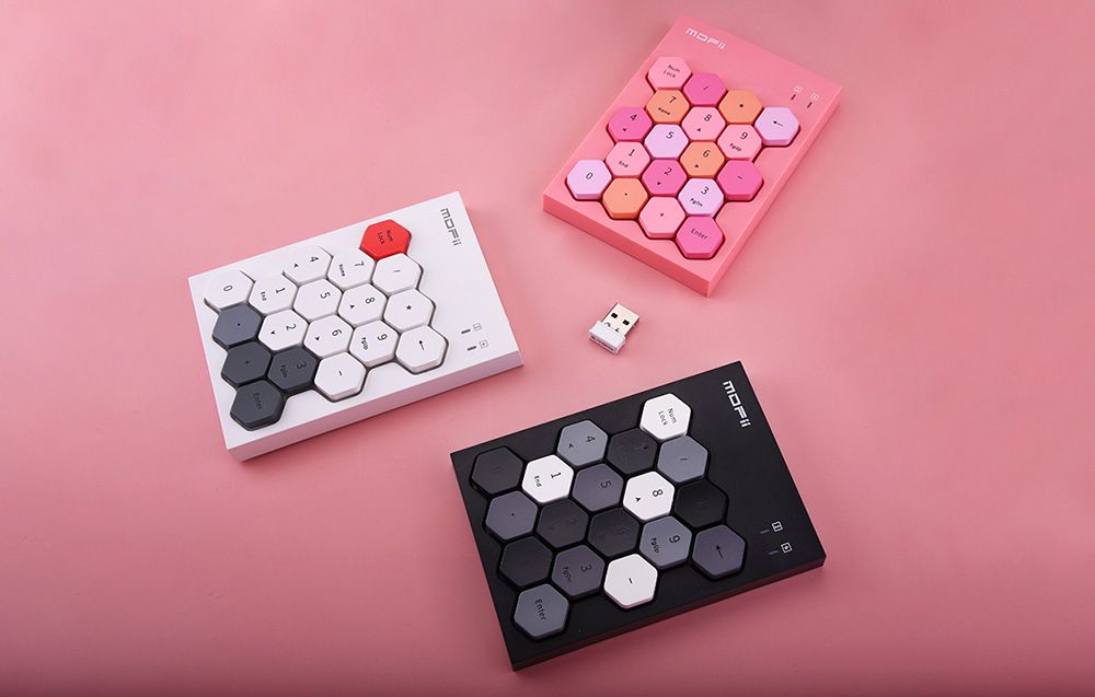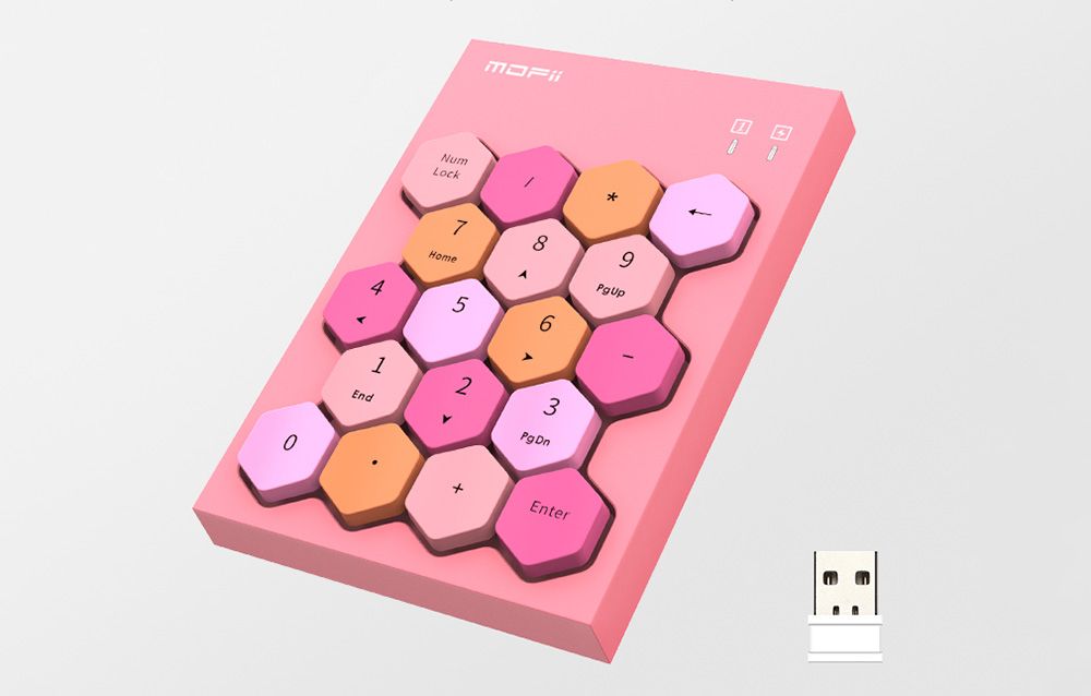 Bezprzewodowa klawiatura numeryczna MOFII SK-660AG doskonale sprawdzi się w połączeniu z urządzeniami pracującymi na systemie Windows w wersji 2000, XP, ME, VISTA, a także 7 / 8 / 10. Na uwagę zasługują także ciekawe warianty kolorystyczne i klawisze w kształcie sześciokąta. Urządzenie jest zasilane akumulatorem o pojemności 180 mAh.