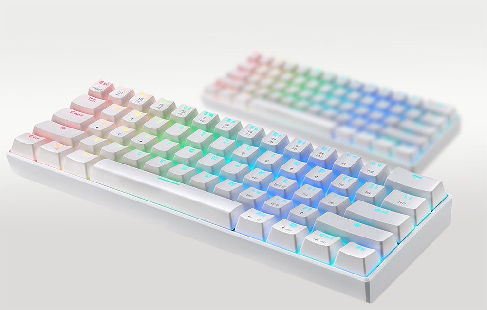 Uzupełnij swoją strefę gracza o klawiaturę Motospeed. CK61 posiada podświetlenie RGB, które nadaje jej stylowego wyglądu. Ponadto możesz wybierać spośród 14 trybów, aby spersonalizować wygląd akcesorium.