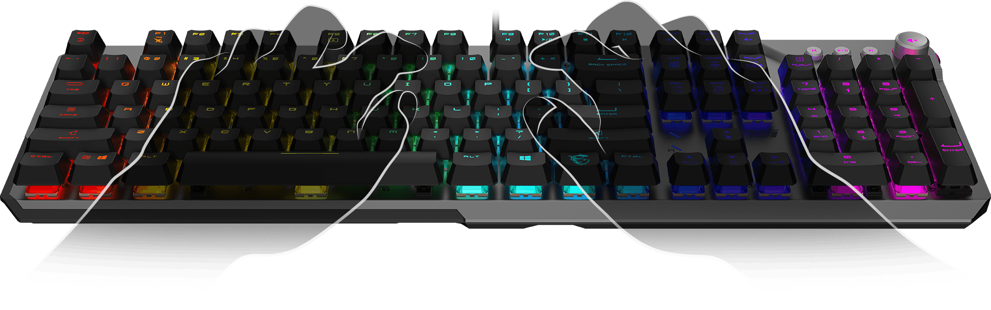 Hybrydowa technologia 6+N z funkcją blokowania klawiszy zapewnia precyzję i responsywność, umożliwiając jednoczesne naciśnięcie wielu klawiszy bez konfliktów, co idealnie sprawdza się w grach i podczas pracy wielozadaniowej. Trzy wbudowane profile pozwalają użytkownikom bezproblemowo przełączać się między konfiguracjami dostosowanymi do pracy, gier lub produktywności. Dodatkowo, oprogramowanie MSI Center umożliwia pełną personalizację klawiszy skrótu, zapewniając szybki dostęp do najczęściej używanych poleceń i zwiększając wydajność oraz usprawniając pracę.