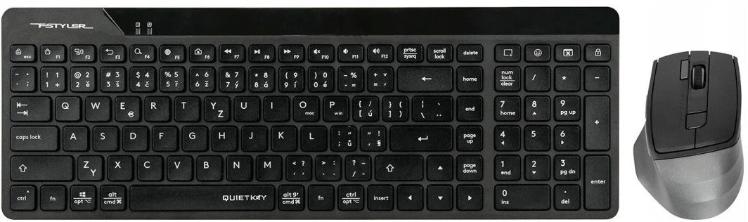 Klawiatura w zestawie A4Tech FG2400 Air2 ma rozkład CZ/SK i jest wyposażona w niskoprofilowe klawisze typu "Chocolate". Taki design ułatwia szybkie i wygodne pisanie, co jest szczególnie istotne podczas długich godzin pracy.