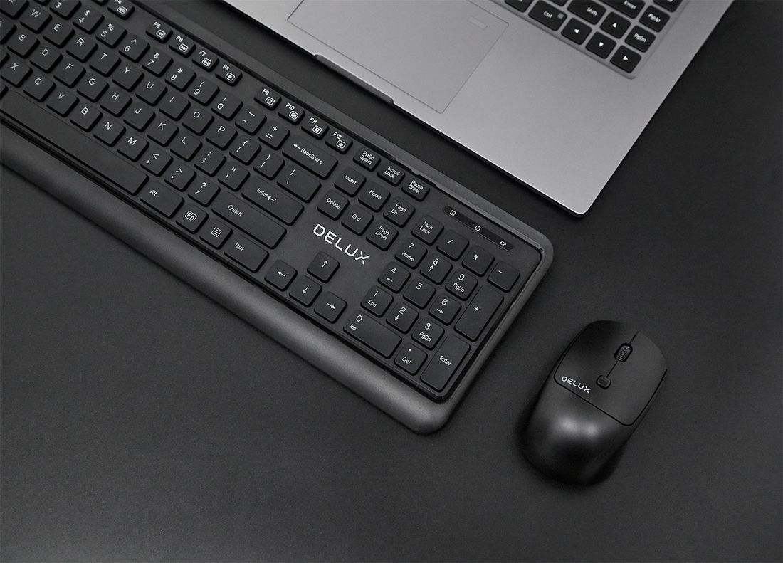 Bezprzewodowy zestaw klawiatura i myszka Delux doskonale sprawdzi się w Twoim domu czy biurze. Klasyczny, stylowy design, kompaktowe rozmiary, 12 klawiszy multimedialnych oraz czułość myszy do 1600 DPI sprawiają, że idealnie nadaje się do wielu różnych zastosowań. Pracuj, graj i przeglądaj ulubione strony internetowe - zestaw Delux zapewni Ci niezapomniany komfort użytkowania i szybkie, płynne działanie.