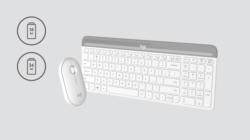 18-miesięczna żywotność baterii dla myszy i 36-miesięczna żywotność baterii klawiatury oznaczają, że nie musisz się martwić o utratę zasilania. Oba urządzenia przechodzą w tryb uśpienia oszczędzający baterię, gdy ich nie używasz.