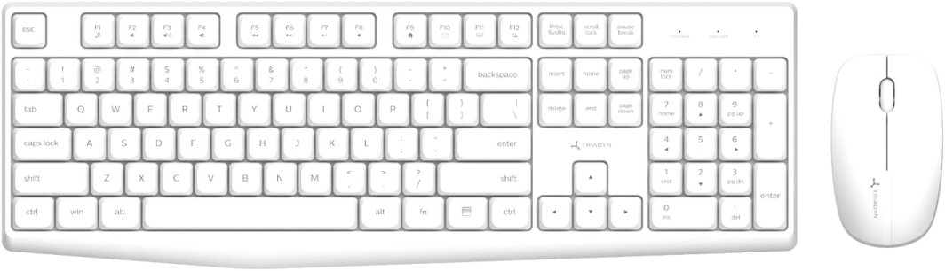 Klawiatura + mysz Triadyn Bezprzewodowy Zestaw Biurowy ELTANIN Klawiatura PORTIA i Mysz BELINDA 1600 DPI Biały