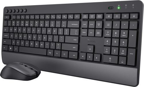 Trust Trezo zawiera także bezprzewodową mysz, która zapewnia swobodę ruchu dzięki technologii RF. Zasięg działania wynosi do 10 metrów, co umożliwia wygodne korzystanie z zestawu w różnych konfiguracjach biurowych. Mysz charakteryzuje się czułością 1000/1400/1800 DPI, co pozwala na precyzyjne sterowanie.