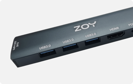 3x USB 3.0 (5 Gb/s); 1x HDMI 2.0; 1x RJ45 (1000 Mb/s); 1x USB Type-C PD (100W)
