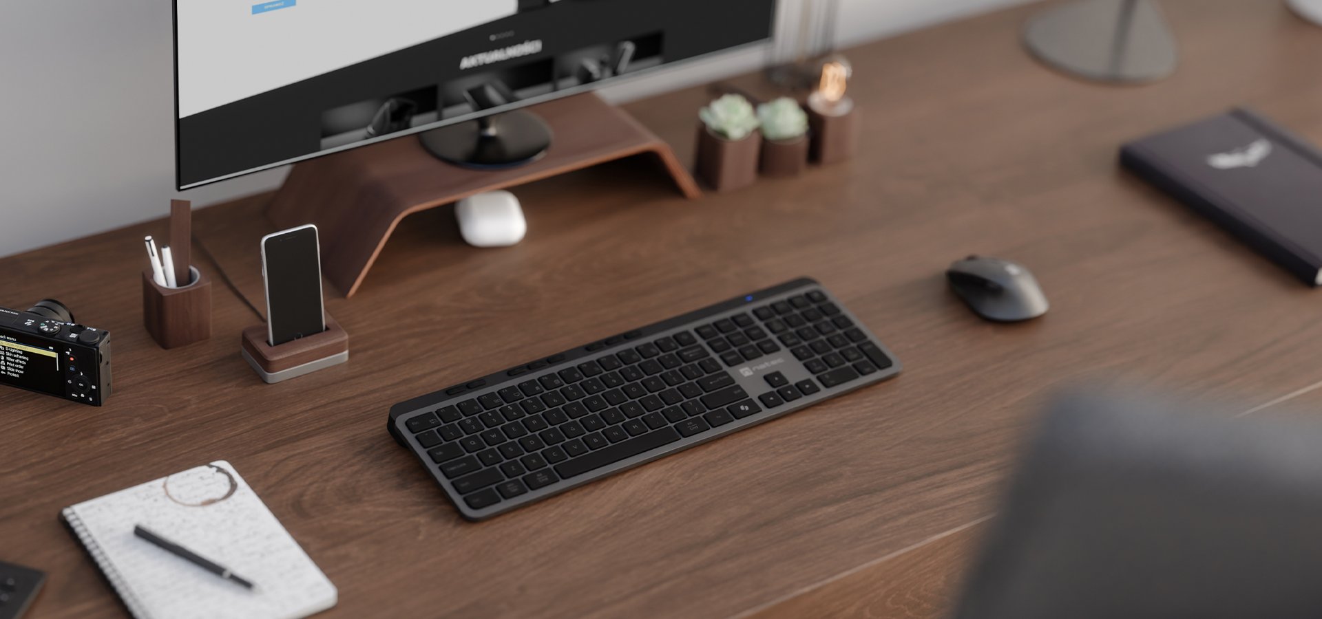 Klawiatura umożliwia błyskawiczne przełączanie się między nawet trzema urządzeniami, jak np. komputer, tablet i smartfon. Jednym kliknięciem zmieniasz kontekst pracy, bez konieczności przerywania swoich „tasków”, czy szukania innego sprzętu. Proste? Proste!
