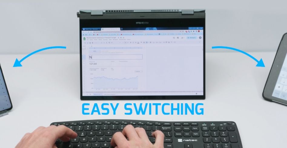 Pracujesz na kilku urządzeniach i chcesz obsługiwać je jedną klawiaturą, bez konieczności ponownego parowania bądź przepinania radioodbiornika? Z Natec Porifera to możliwe. Wykorzystaj połączenie BT 5.0, dzięki któremu podłączysz dwa urządzenia. Trzecie obsłużysz przy pomocy nadajnika 2.4 GHz. Do przełączania się między nimi posłużą Ci funkcje ukryte pod przyciskami „Q”, „W”, oraz „E”. Co więcej, praca z różnorodnymi systemami będzie prosta, jak nigdy, a to za sprawą dedykowanych klawiszy skrótów, które już dobrze znasz. Zasięg? I o to nie musisz się martwić. Natec Porifera pozwoli Ci pracować z urządzeniami oddalonymi nawet o 10 m.