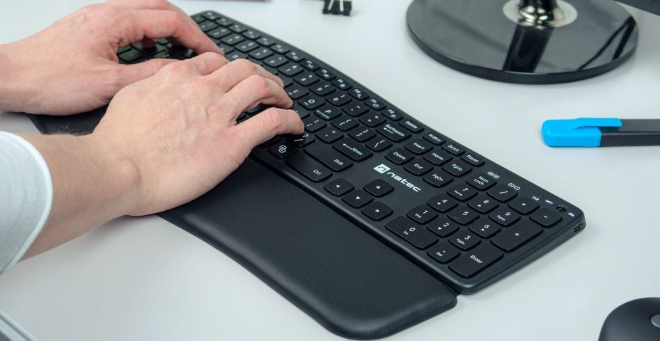 Postaw na ergonomię i pozbądź się bólu nadgarstków ze specjalnie zaprojektowaną, bezprzewodową klawiaturą Natec Porifera. Montowana na magnes miękka podkładka, przemyślane profilowanie i płaskie, ciche klawisze z mechanizmami X-Scissors – dzięki tym elementom wygodnie ułożysz dłonie i zniwelujesz dyskomfort nawet w trakcie najdłuższych sesji, co pozwoli Ci pracować efektywniej. Połącz ją z urządzeniami dzięki potrójnemu trybowi komunikacji i ciesz się obsługą kilku sprzętów jednocześnie. Duża ilość funkcji dodatkowych oraz współpraca z dowolnym systemem zapewnią swobodę, która znacząco usprawni Twoją codzienną pracę.