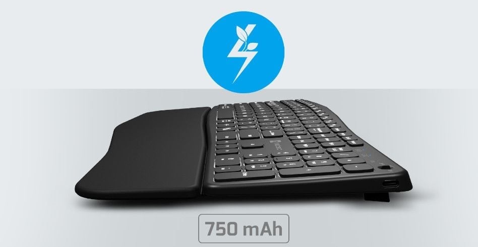 Natec Porifera to klawiatura bezprzewodowa, którą bez trudu naładujesz dołączonym do zestawu przewodem kątowym USB-C o długości 1,5 m. Zapomnij o regularnej wymianie baterii. Ten ergonomiczny model wyposażyliśmy w pojemny akumulator o pojemności 750 mAh, który zapewni długi czas pracy na jednym ładowaniu. Co więcej, Natec Porifera wyposażyliśmy w system inteligentnego zarządzania energią. Dzięki niemu klawiatura w automatyczny sposób przejdzie w stan uśpienia w momencie bezczynności. Możesz też ręcznie wyłączyć ją odpowiednim przełącznikiem. Pozwoli to zaoszczędzić energię i wydłużyć czas pracy. Wszystko zależy od Ciebie.