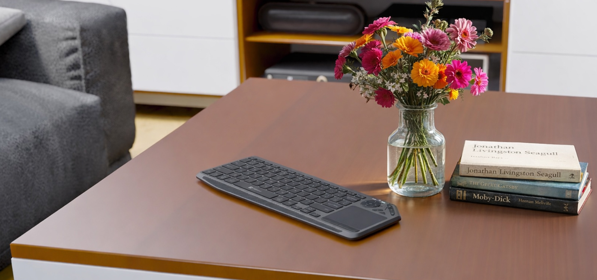 Precyzyjny, wielofunkcyjny touchpad pozwala swobodnie sterować kursorem i korzystać z gestów bez potrzeby sięgania po mysz. Zyskujesz pełną kontrolę nad systemem i aplikacjami, co jest szczególnie wygodne podczas obsługi telewizora, prezentacji czy pracy w ograniczonej przestrzeni.