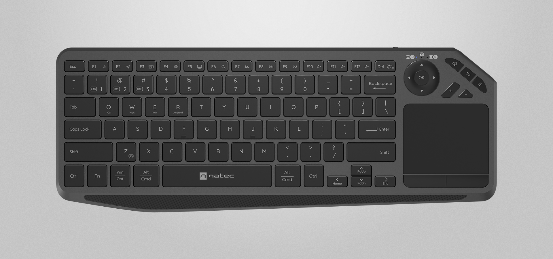 Natec Turbot 2 to praktyczne rozwiązanie stworzone z myślą o domowej rozrywce i codziennej pracy. Łączy pełnowymiarową klawiaturę z wbudowanym touchpadem, dzięki czemu pozwala wygodnie sterować np. telewizorem typu Smart TV, tabletem lub komputerem bez konieczności sięgania po dodatkowe akcesoria. To idealny wybór do salonu, biura, podróży oraz wszędzie tam, gdzie liczy się komfort, mobilność i oszczędność miejsca.