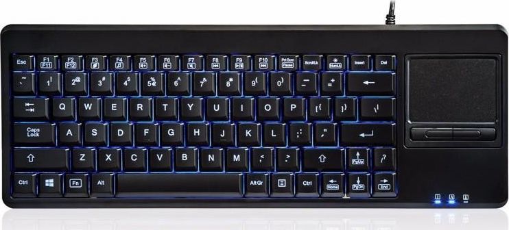 Przewodowa podświetlana klawiatura z touchpadem. Wymiar klawiatury: 370 x 138 x 23 mm. Niebieskie podświetlenie z 4 poziomami regulacji jasności. Wbudowany touchpad z łatwą kontrolą funkcji wskazywania sprawia, że idealnie nadaje się do pracy. Z nakładkami na klawisze w normalnym rozmiarze. Możesz zachować szybkość i dokładność pisania. Dodano 2 huby, idealne dla komfortu pracy. Pasuje również do kiosku, szafy 19 ", zastosowań profesjonalnych i różnych zastosowań przemysłowych. Dodano 8 multimediów, z kontrolą wideo, audio i funkcją internetową, łatwo dostępne za pomocą klawisza FN. Kabel ma około 1,8 metra. Wystarczy, że połączysz się z komputerem, niezależnie od tego, czy znajduje się on na biurku, czy pod nim.