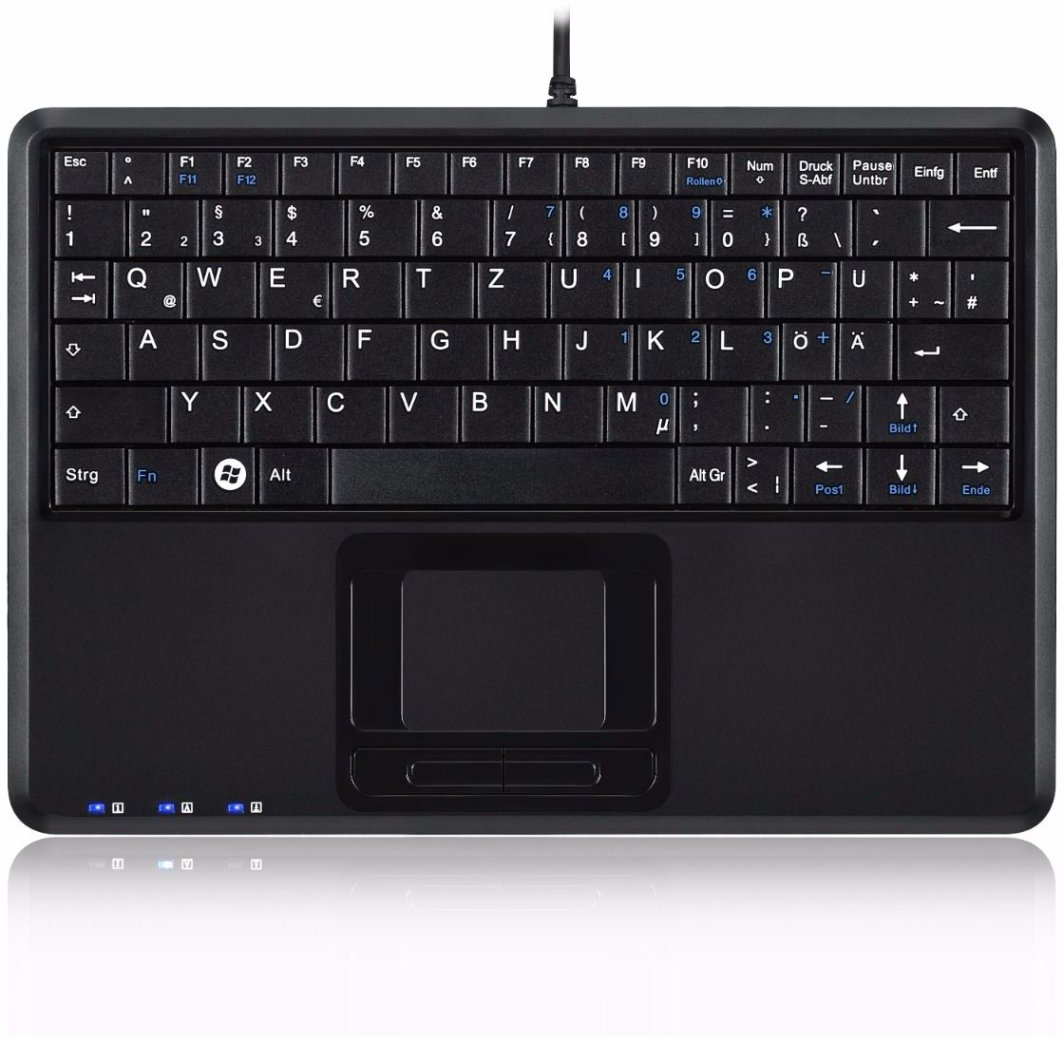 Wbudowany touchpad o wymiarach 44 x 35 mm umożliwia łatwe i wygodne sterowanie funkcją myszy, co czyni klawiaturę idealnym rozwiązaniem w miejscach, gdzie przestrzeń jest ograniczona, a dostęp do tradycyjnej myszy jest utrudniony.