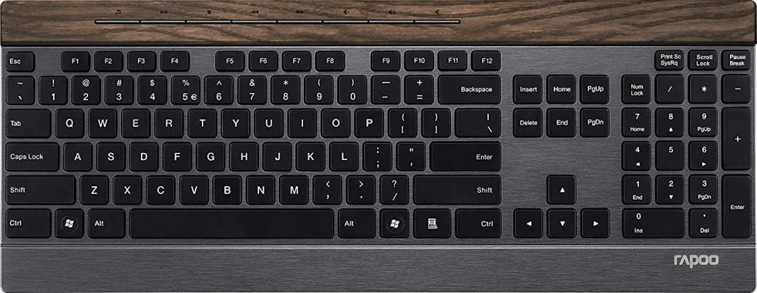 Wykonana ze szczotkowanej stali nierdzewnej i stopu aluminium klawiatura bezprzewodowa Multi-Mode E9260 Wood wzbogacona została niebanalnym drewnianym elementem. Wyrafinowana stylistyka Rapoo E9260 to jednak tylko dodatek. Pełnowymiarowe akcesorium wyposażono w 104 klawisze nożycowe, w tym blok numeryczny oraz 8 przycisków multimedialnych pozwalających swobodnie zatrzymywać, przewijać i wyłączać materiały. Designerską klawiaturę Rapoo Multi-Mode E9260 Wood stworzono z myślą o użytkownikach ceniących nieszablonowe rozwiązania. Akcesorium doskonale sprawdza się w pracy biurowej, nie gorzej także w codziennym użytkowaniu. Dzięki niewielkim rozmiarom na poziomie 433 x 168 x 23 mm oraz bezprzewodowemu połączeniu multi-mode: 2,4 GHz, Bluetooth 3.0 oraz Bluetooth 4.0 może pracować w dowolnym miejscu w pokoju: przy biurku, stole, na kanapie lub ulubionym fotelu. Rapoo E9260 automatycznie paruje się z działającymi urządzeniami i powala na jednoczesne połączenie z 4 akcesoriami. Klawiatura zasilana jest bateriami AA, pozwalającymi na 12 miesięcy pracy.