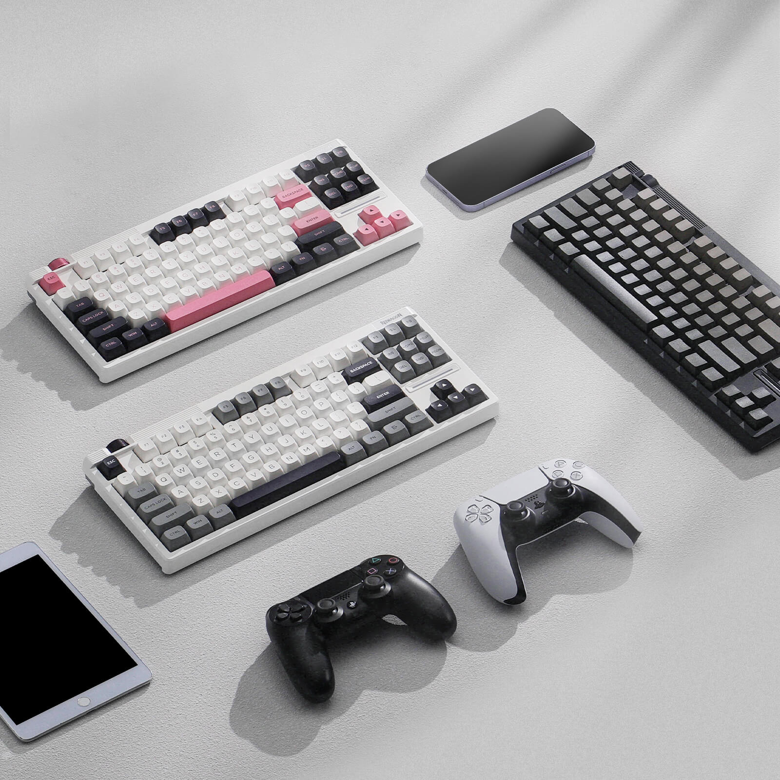 Klawiatura została zbudowana w oparciu o pięcio-warstwowy system gasket mount, który wycisza dźwięk i zapewnia wyjątkowo miękką, sprężystą pracę klawiszy. Kompaktowy układ TKL daje pełną funkcjonalność bez bloku numerycznego, zwalniając miejsce na mysz i poprawiając ergonomię stanowiska. Mechanizm hot-swap umożliwia wymianę przełączników bez lutowania, dzięki czemu możesz błyskawicznie dopasować klawiaturę do swojego stylu gry lub pisania. Całość zamknięto w solidnej i stylowo wykończonej obudowie w bieli ze stonowanymi, szarymi akcentami.