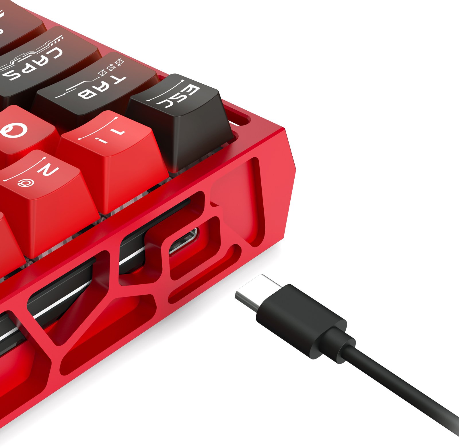 Obudowa wykonana w technologii CNC z aluminium zwiększa trwałość oraz stabilność konstrukcji. Kompaktowy format 61 klawiszy sprawia, że VENOM K753-RGB-M zajmuje niewiele miejsca na biurku. Odłączany przewód USB-C ułatwia transport i organizację stanowiska. Intensywne kolory i ostre, dynamiczne akcenty nadają modelowi unikalny, agresywny charakter, który wyróżnia go na tle klasycznych konstrukcji.