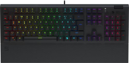 Konfigurowalne podświetlenie RGB daje niemal nieograniczone możliwości kombinacji kolorów. Możesz wybierać spośród 18 różnych istniejących wcześniej stylów oświetlenia - od stałego nastroju lub ruchomego wzoru, takiego jak fala i płynna zmiana koloru, po podświetlenie reagujące na przyciski. Wszystkie modyfikacje i ustawienia efektów można zmienić w oprogramowaniu SPC Gear, co umożliwia dostosowanie wyglądu klawiatury.