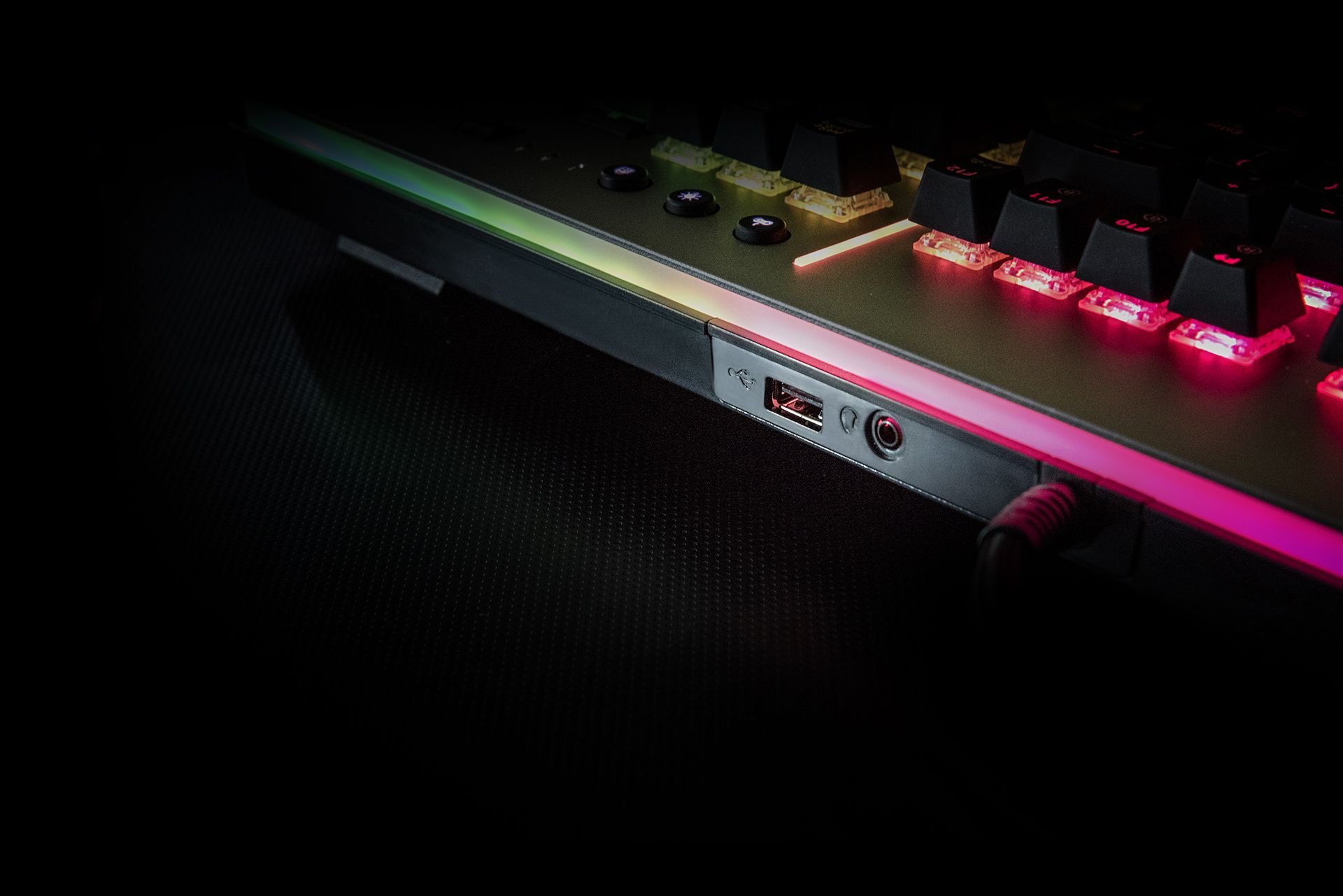 Dostosuj i spersonalizuj swoje oświetlenie za pomocą 16,8 miliona prawdziwych kolorów RGB z masywnym 13 podświetleniem z przodu i 14 z boku, aby uzyskać najbardziej dynamiczne i ekstrawaganckie efekty świetlne, aby ożywić rozgrywkę. Wybierz spośród wielu unikalnych efektów świetlnych, takich jak: sterowanie dźwiękiem w trzech trybach, temperatura systemu lub skonfiguruj własne, niestandardowe kolory w ciągu kilku sekund.