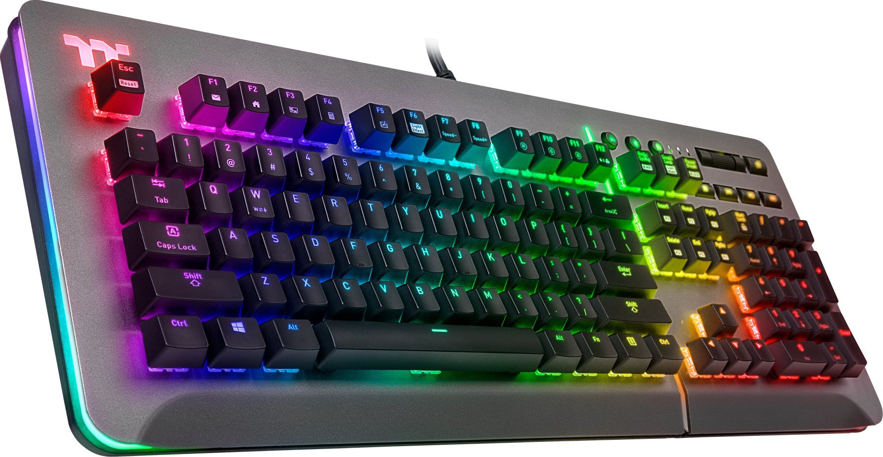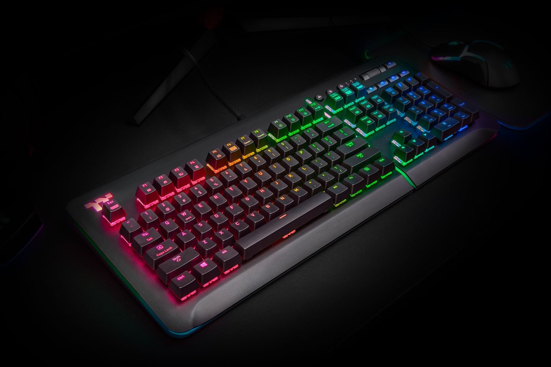 Klawiatura do gier RGB LEVEL 20 przenosi wydajność gier na nowy poziom. Korzystanie z najnowszych i najbardziej innowacyjnych technologii zarówno na poziomie oprogramowania, jak i sprzętu; przekształca rozgrywkę poprzez inteligentne granie i zapewnia tę najważniejszą przewagę konkurencyjną. Zbudowany z wysokiej jakości aluminiowego panelu przedniego i pływającej nasadki klawiszy, zapewnia 16,8 miliona rzeczywistego oświetlenia kolorów RGB zarówno w strefie RGB przedniej i bocznej, zapewniając masywne 13 dynamicznych efektów świetlnych (przednich) i 14 dynamicznych efektów świetlnych (boczna strona) koloru zapewnia prawdziwie spersonalizowane wrażenia RGB. Jest kompatybilny ze wszystkimi zasilaczami Thermaltake TT RGB PLUS. Rozwiązania do chłodzenia cieczą, wentylatory skrzynkowe i wszelkie inne produkty oznaczone logo TT RGB Sync, umożliwiając entuzjastom bezproblemową synchronizację wszystkich kolorów RGB ze wszystkimi liniami produktów zgodnymi z Thermaltake, dla jeszcze większej koordynacji kolorów. Ponadto, poziom 20 RGB jest wyposażony w specjalnie zaprojektowaną aplikację na smartfony / tablety ze sterowaną głosem sztuczną inteligencją, zapewniającą dostęp do funkcji światła i niezbędnych makr oraz zawiera ekskluzywny, opatentowany tryb Virtual Game Controller (VGC) zapewniający naprawdę wyjątkową i zadziwiającą rozgrywkę mobilną.