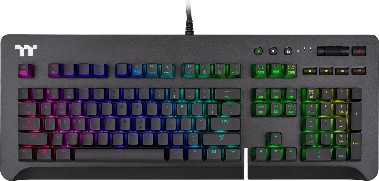 Klawiatura do gier RGB LEVEL 20 przenosi wydajność gier na nowy poziom. Korzystanie z najnowszych i najbardziej innowacyjnych technologii zarówno na poziomie oprogramowania, jak i sprzętu; przekształca rozgrywkę poprzez inteligentne granie i zapewnia tę najważniejszą przewagę konkurencyjną. Zbudowany z wysokiej jakości aluminiowego panelu przedniego i pływającej nasadki klawiszy, zapewnia 16,8 miliona rzeczywistego oświetlenia kolorów RGB zarówno w strefie RGB przedniej i bocznej, zapewniając masywne 13 dynamicznych efektów świetlnych (przednich) i 14 dynamicznych efektów świetlnych (boczna strona) koloru zapewnia prawdziwie spersonalizowane wrażenia RGB. Jest kompatybilny ze wszystkimi zasilaczami Thermaltake TT RGB PLUS. Rozwiązania do chłodzenia cieczą, wentylatory skrzynkowe i wszelkie inne produkty oznaczone logo TT RGB Sync, umożliwiając entuzjastom bezproblemową synchronizację wszystkich kolorów RGB ze wszystkimi liniami produktów zgodnymi z Thermaltake, dla jeszcze większej koordynacji kolorów. Ponadto, poziom 20 RGB jest wyposażony w specjalnie zaprojektowaną aplikację na smartfony / tablety ze sterowaną głosem sztuczną inteligencją, zapewniającą dostęp do funkcji światła i niezbędnych makr oraz zawiera ekskluzywny, opatentowany tryb Virtual Game Controller (VGC) zapewniający naprawdę wyjątkową i zadziwiającą rozgrywkę mobilną.