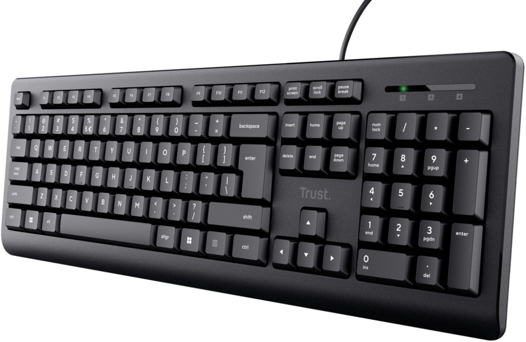 Trust Primo to pełnowymiarowa klawiatura z 104 klawiszami, w tym częścią numeryczną, co czyni ją wszechstronnym narzędziem do pracy oraz rozrywki. Elegancki czarny kolor sprawia, że doskonale wpasuje się w każde biurko.