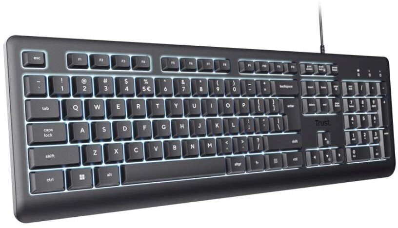 Klawiatura Trust TRUST klawiatura Primo, membranowa, USB-C, podświetlana, czarny
