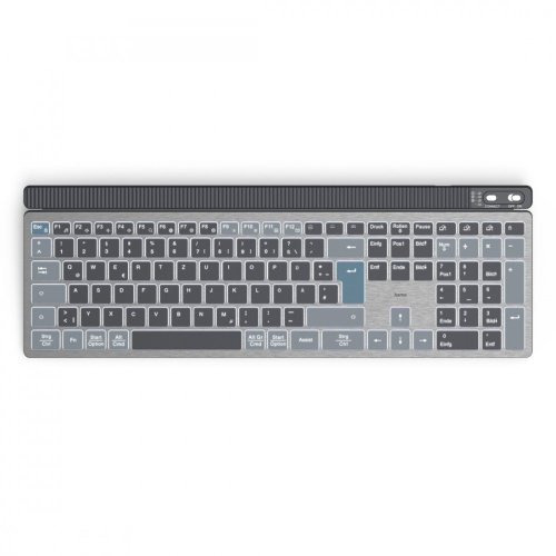Pełnowymiarowa klawiatura bezprzewodowa z szyfrowaniem danychFunkcjonalność: Łączność radiowa USB (1 urządzenie) i Bluetooth (2 urządzenia) Zasilanie: ładowanie kablem USB Ciche klawisze nożycowe Szybka obsługa multimediów z klawiszami F Pełnowymiarowa, z blokiem numerycznym Aluminiowa obudowa Podświetlane klawisze Odporny na ścieranie nadruk laserowy Przycisk asystenta AI Microsoft Copilot (sztuczna inteligencja) Szyfrowanie wpisywanych danych Tryb uśpienia po 5 minutach bezczynności Klawiatura wykonana w 65% z Opakowanie wykonane z papieru, co potwierdza odpowiedzialne zarządzanie zasobami leśnymi. UWAGA: układ klawiszy QWERTY (polski) - zdjęcia przedstawiają jedynie poglądowy wygląd klawiatury W zestawie kabel ładujący USB-A / USB-C oraz adapter USB-C do USB-A Bezprzewodowa wygoda pracy Klawiatura bezprzewodowa Hama WK-750 oferuje wszechstronną łączność multi-device, umożliwiając jednoczesne podłączenie do trzech urządzeń (1 USB, 2 Bluetooth) i szybkie przełączanie między nimi za pomocą przycisku. Stabilne połączenie 2,4 GHz oraz Bluetooth 5.2 zapewnia swobodę użytkowania na odległość do 10 metrów. Ładowanie kablem USBKlawiatura bezprzewodowa z wbudowanym akumulatorem litowo-polimerowym zapewnia pełną mobilność i elastyczność użytkowania. Dzięki niej nie musisz martwić się o częstą wymianę baterii, a naładowana gwarantuje ok. 20 dni pracy (w zależności od użytkowania). Bezpieczeństwo danychBezpieczeństwo Twoich danych jest priorytetem. Klawiatura bezprzewodowa szyfruje wszystkie wpisywane dane za pomocą standardu AES-128, co chroni Cię przed niepożądanym dostępem i zapewnia pełną prywatność przy każdym użyciu.Elegancki wygląd i trwałośćElegancki wygląd i wytrzymała konstrukcja to zasługa wysokiej jakości komponentów aluminiowych. Klawiatura bezprzewodowa Hama WK-750 nie tylko świetnie się prezentuje, ale również jest odporna na codzienne użytkowanie, łącząc estetykę z trwałością.Ergonomia i komfortMechanizm nożowniczy w tej klawiaturze bezprzewodowej Hama zapewnia cichą pracę, idealną do domu lub biura. Regulowane podświetlenie umożliwia komfortową pracę w ciemniejszych pomieszczeniach. Natomiast składane nóżki umożliwiają dostosowanie kąta nachylenia klawiatury, co zapewnia wygodną pozycję dłoni podczas pisania. Przycisk AI Microsoft CopilotWbudowany przycisk asystenta AI Assist* pozwala na szybszy dostęp do funkcji pomocniczych Microsoft Copilot, co ułatwia korzystanie z oprogramowania. Jest to wygodne rozwiązanie dla osób ceniących sobie współpracę ze sztuczną inteligencją. *Funkcja przycisku AI dostępna po aktualizacji systemu do Microsoft Windows 11 oraz zainstalowaniu aplikacji Copilot.Klawiatura numerycznaPełnowymiarowa klawiatura bezprzewodowa z blokiem numerycznym idealnie sprawdzi się w pracy i w domu. Zapewnia wygodę podczas codziennych zadań, takich jak pisanie dokumentów czy obsługa aplikacji biurowych. Klawisze multimedialneDzięki funkcji Fn możesz łatwo zarządzać multimediami za pomocą klawiszy funkcyjnych F1-F12. Możliwość blokady Fn pozwala na szybkie przełączanie między standardowymi a multimedialnymi funkcjami klawiszy, co umożliwia bezpośredni dostęp do przydatnych opcji, takich jak regulacja głośności czy zmiana utworów, bez konieczności ciągłego przytrzymywania przycisku Fn.Efektywne zarządzanie energiąBezprzewodowa klawiatura Hama WK-750 automatycznie przechodzi w tryb uśpienia po 5 minutach bezczynności, co pomaga oszczędzać energię. Dodatkowy przełącznik On/Off umożliwia szybkie wyłączenie klawiatury, co pozwala jeszcze bardziej zoptymalizować zużycie akumulatora i wydłużyć jego żywotność.Ekologiczny wybórObudowa i klawisze tej klawiatury bezprzewodowej Hama WK-7-50 są wykonane w 65% z plastiku ABS pozyskanego z recyklingu. Klawiaturę otrzymasz w opakowaniu w 100% wolnym od plastiku, wykonanym z papieru z certyfikatem FSC, potwierdzającym odpowiedzialne zarządzanie zasobami leśnymi i zrównoważoną produkcję.Specyfikacja: Połączenie: 2,4 GHz (odbiornik USB-A) Połączenie: Bluetooth 5.2 Zasięg: do 10 metrów Liczba klawiszy: 113 Wymiary: 41,2 x 13,8 x 1,8 cm Waga (wraz z bateriami): 508 g Długość kabla do ładowania: 1,8 m Układ klawiszy: QWERTY (polski) Kompatybilność: Android 8.0 or higher/MacOS 11 or higher/Windows 11/10/iOS 14 or higher/iPadOS 14 or higher Zasilanie: akumulator litowo - polimerowy Nadruk znaków: laserowy- Mechanizm klawiszy: nożycowy Model: WK-750Akcesoria w zestawie: Wymiary: 41,2 x 13,8 x 1,8 cmPozostałe parametry: ...