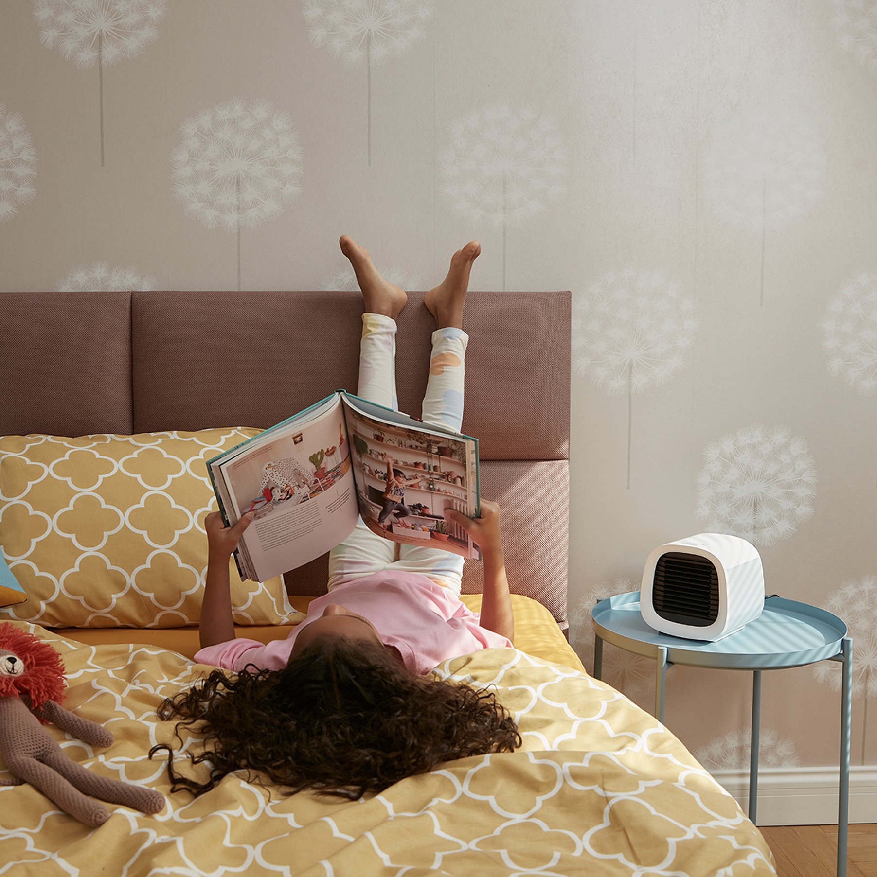 evaCHILL został zaprojektowany z myślą o łatwym przenoszeniu i dopasowaniu do każdej przestrzeni. Jego kompaktowe wymiary, niska waga oraz wygodny uchwyt sprawiają, że można go bez wysiłku ustawić na biurku, szafce nocnej czy zabrać ze sobą do innego pomieszczenia. Obsługa jest niezwykle prosta i odbywa się za pomocą jednego przycisku. Dodatkowym atutem jest wbudowane, delikatne podświetlenie LED, które nadaje urządzeniu nowoczesny wygląd i może pełnić funkcję lampki nocnej.