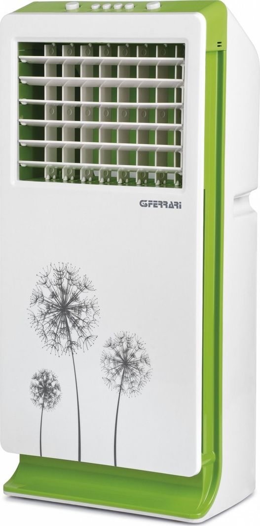 Klimator przenośny G3Ferrari G50023 FRIO Chłodnica powietrza Frio, dzięki wydajnemu systemowi wyparowywania, jest idealna do szybkiego chłodzenia domu i biura. Trzy prędkości wentylatora i oscylujące łopatki poprawiają przepływ powietrza i zapewniają równomierne rozprowadzenie świeżego powietrza w całym pomieszczeniu. Wyposażony w filtr oczyszczający powietrze i bardzo łatwy w użyciu panel sterowania, Frio może pracować nieprzerwanie przez 8-10 godzin i jest wyposażony w 2 wkłady mrożące, które pozwalają cieszyć się chłodnym środowiskiem przez cały dzień.