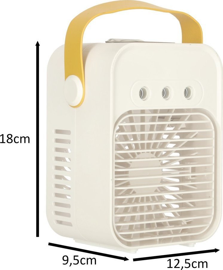 Klimatyzator klimator przenośny wentylator biurkowy nawilżacz USB w eleganckim białym kolorze to doskonałe rozwiązanie na gorące dni. Dzięki swojej kompaktowej konstrukcji, urządzenie sprawdzi się zarówno w biurze, jak i w domowym zaciszu, oferując przyjemny chłód i komfort w każdych warunkach.