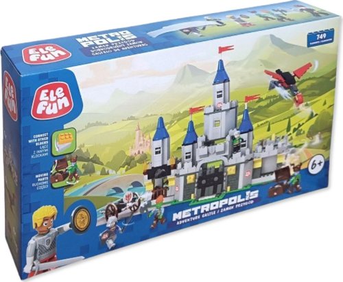 Klocki Elefun Metropolis Zamek przygód są kompatybilne z innymi markowymi klockami, co zwiększa możliwości zabawy i pozwala na tworzenie bardziej złożonych konstrukcji. W zestawie znajdują się również dodatkowe akcesoria, takie jak separator klocków oraz papierowa instrukcja, co ułatwia zabawę i organizację elementów.