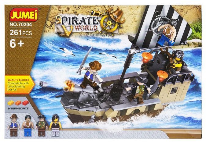 Klocki Jumei PIRACI to niezwykły zestaw składający się z 261 elementów, który wprowadza dzieci w fascynujący świat piratów. Dzięki różnorodnym klockom, maluchy mają szansę rozwijać swoją wyobraźnię oraz zdolności manualne, tworząc własne konstrukcje i przeżywając niezapomniane przygody na morzu.
