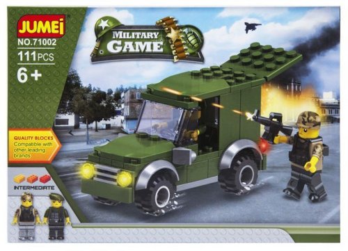 Klocki Jumei WOJSKO ŻOŁNIERZE to znakomity zestaw dla młodych entuzjastów budowania oraz zabawy w odgrywanie wojskowych scenariuszy. Z 111 elementami dzieci mają szansę rozwijać swoje zdolności manualne i kreatywność, tworząc własne, niepowtarzalne konstrukcje i historie.
