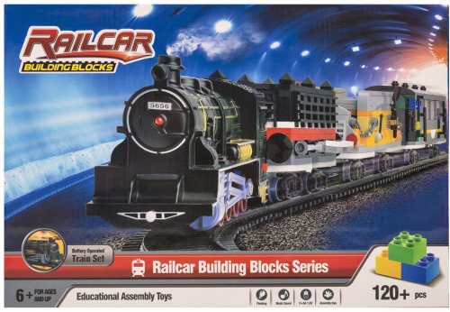 - pakiet klocków do samodzielnego złożenia wagonika, który wraz z lokomotywą tworzy tabor kolejowy