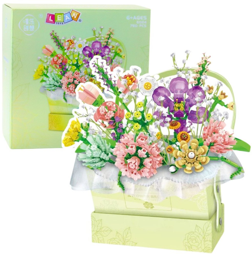 Klocki Konstrukcyjne Kompozycja W Pudełku Box Kwiatowy Zielony LED 750el. LEAN Toys