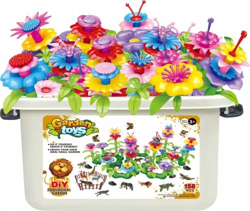 W zestawie znajdują się różnorodne elementy do budowy kolorowych kwiatów oraz miniaturowe figurki zwierząt, które sprawiają, że zabawa staje się jeszcze bardziej realistyczna. Dzieci mogą eksperymentować z kolorami i formami, tworząc unikalne aranżacje, które rozweselą ich wyobraźnię.