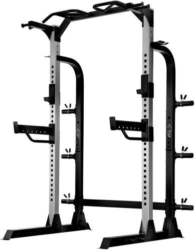 Konstrukcja typu half rack sprawia, że klatka zajmuje niewiele miejsca, co czyni ją idealnym rozwiązaniem do domowych siłowni. Możliwość kotwienia do podłoża zapewnia dodatkową stabilność, a szybki dostęp do sprzętu sprawia, że treningi są jeszcze bardziej komfortowe.