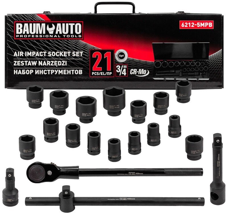 Klucze nasadowe udarowe 3/4'' 21el 6-kątnych 17-50mm walizka