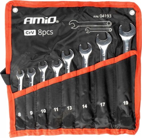 Klucze płaskie oczkowe zestaw kluczy oczkowych 8-19 mm 8 szt. amio-04193