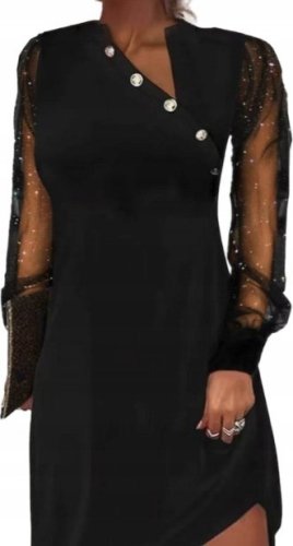 Kobieca Elegancka Sukienka Wieczorowa Czarna Długi Rękaw 2XL