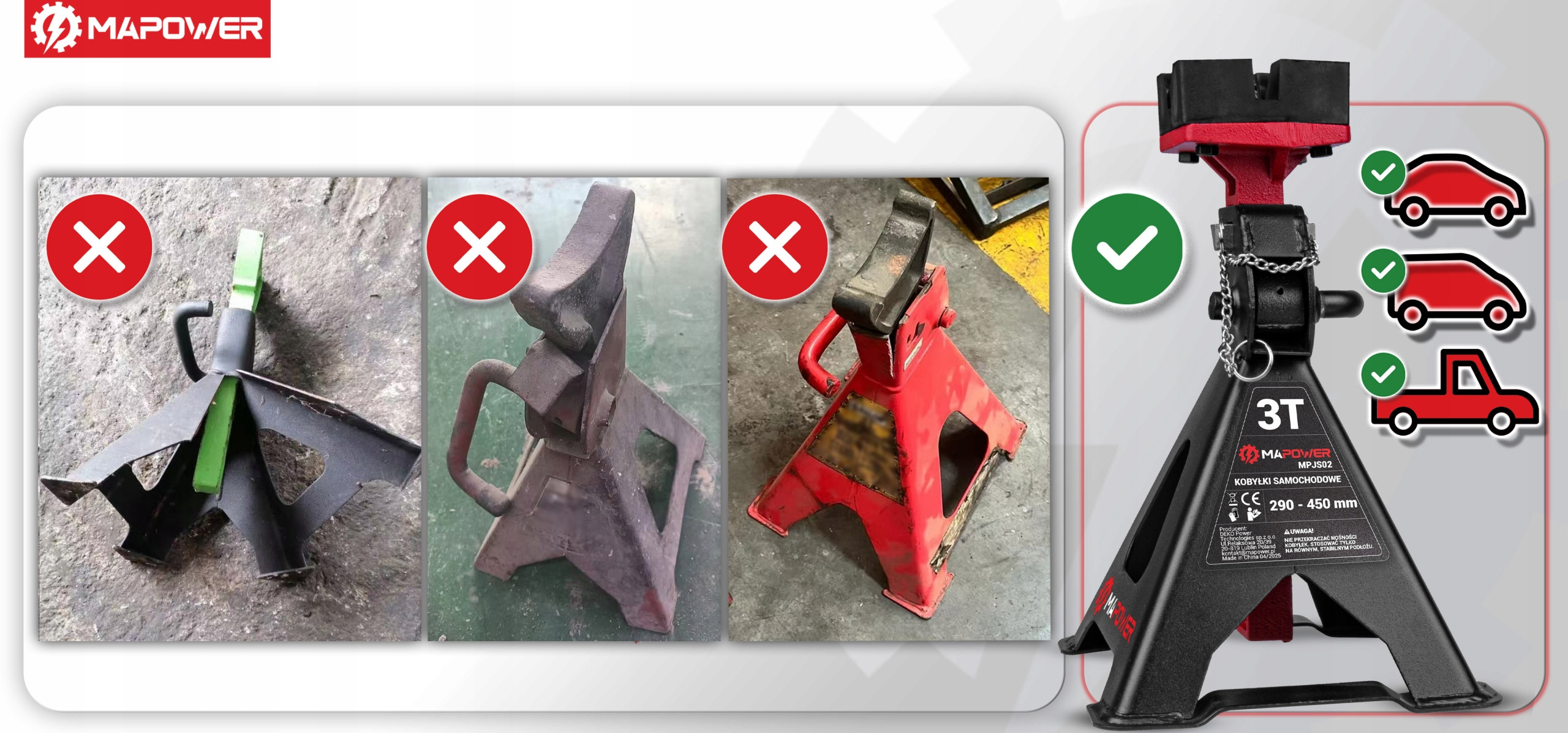 KOBYŁKI SAMOCHODOWE WARSZTATOWE PODPORY PODSTAWKI BLOKADA [3T] 2SZT MAPOWER