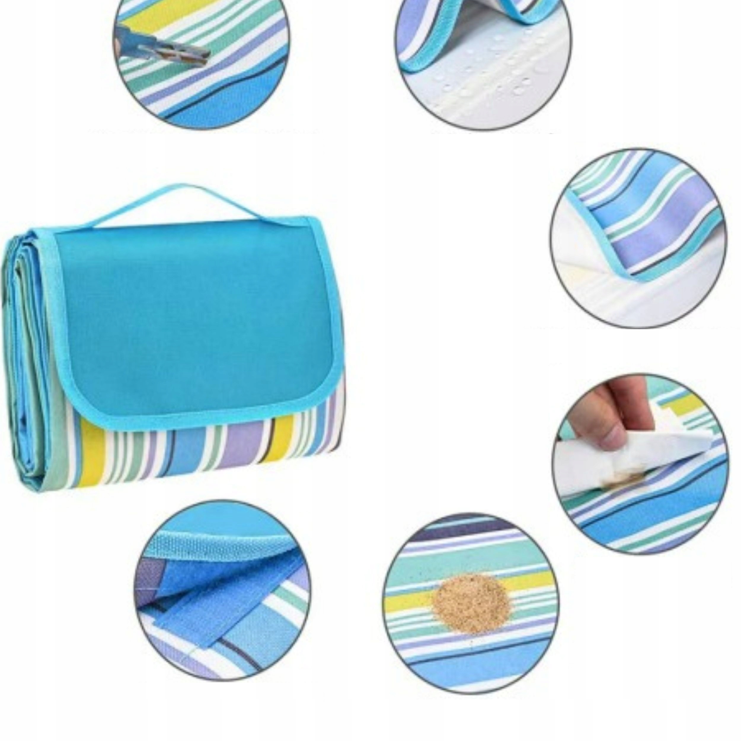 Po zakończeniu zabaw na plaży, wystarczy wytrzepać koc, aby usunąć piasek między włóknami. Po dłuższym użytkowaniu wystarczy użyć wody do czyszczenia.