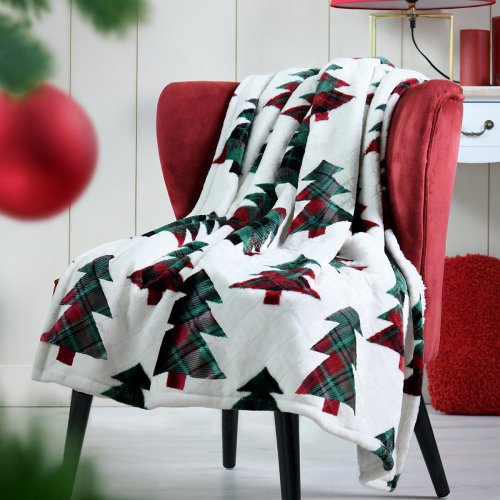 Koc świąteczny KLAUS w choinki, 130 × 160 cm