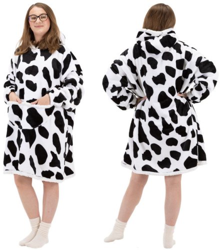 Kocobluza damska oversize koc bluza 2w1 z kapturem ciepła szlafrok futrzak czarno-biały UNIWERSALNY