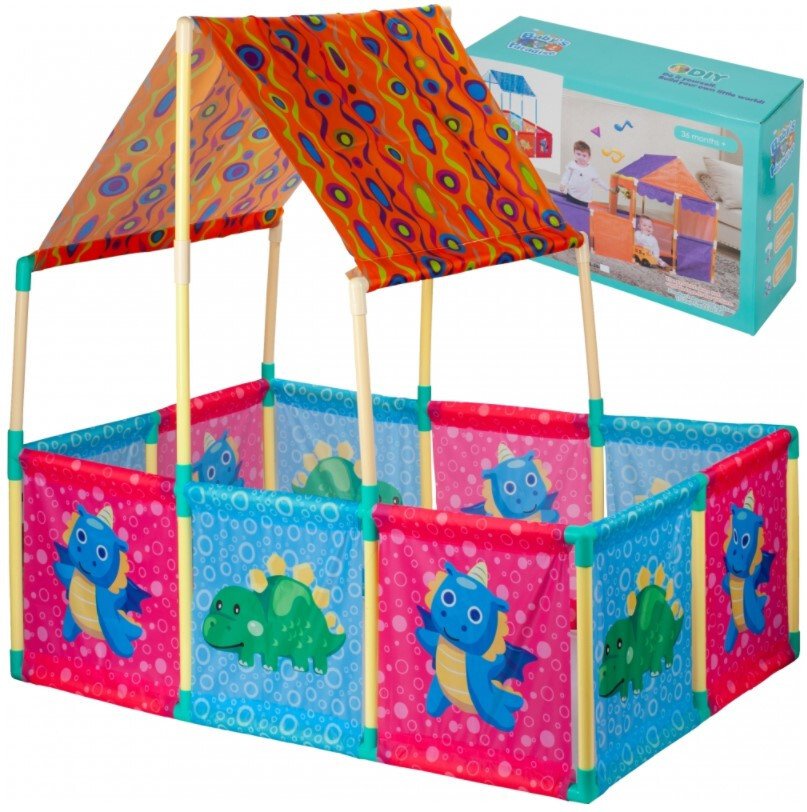 Kojec wykonany jest z wytrzymałej tkaniny oraz wysokiej jakości plastikowych rur, co zapewnia jego długotrwałość. Solidne materiały gwarantują, że namiot przetrwa intensywne zabawy, a jego atrakcyjny design z motywem dinozaurów z pewnością przyciągnie uwagę najmłodszych.