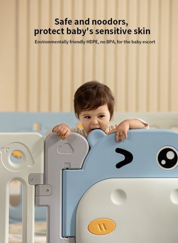Funkcje zestawu: - odpowiedni dla dzieci powyżej 6-go miesiąca życia, - możliwość zbudowania dowolnej wielkości kojca według własnych upodobań, - elementy manipulacyjne wewnątrz kojca: przesuwane kółeczka, zębatki, piszczałka w ptaszku i kierownicy, obrotowa kierownica. - wykonany z trwałych i nietoksycznych materiałów, - blokada drzwi na zewnątrz, - antypoślizgowe nóżki, - łatwo się składa i rozkłada, - kosz na piłeczki i piłeczki w zestawie. |