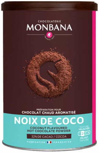 Monbana Rocher Coco to czekolada w proszku, która urzeka intensywnym aromatem kokosa. Po dodaniu gorącego mleka, zamienia się w gęsty, kremowy napój, idealny na chłodne dni lub jako słodki akcent podczas chwili relaksu. Jej unikalny smak sprawia, że jest doskonałym wyborem na każdą porę dnia.
