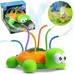 Zielono pomarańczowy żółw z kolorowymi, giętkimi rurkami do zraszania zapewni mnóstwo wesołej zabawy w upalny dzień. Fontanna, która powstaje podczas podłączenia zwykłego węża ogrodowego do żółwia zapewni mnóstwo śmiechu, ruchu, cudownej zabawy. Zraszacz do wody jest łatwy w montażu i można go podłączyć samodzielnie do każdego standardowego węża ogrodowego i kranu, regulując ciśnienie wody w kranie zapewnisz mocniejsze zraszanie lub delikatniejsze.