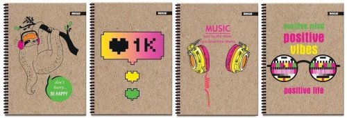 Kołozeszyt A4, posiada 80 kartek o gramaturze 70 g/m2 w kratkę. Charakteryzuje się estetycznym wykończeniem, modną grafiką fluo, ekologiczną okładką i czarną spiralą.